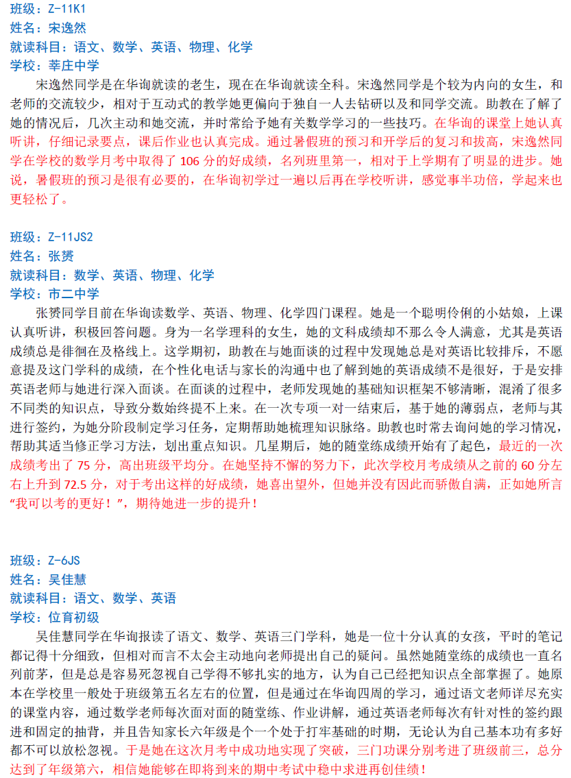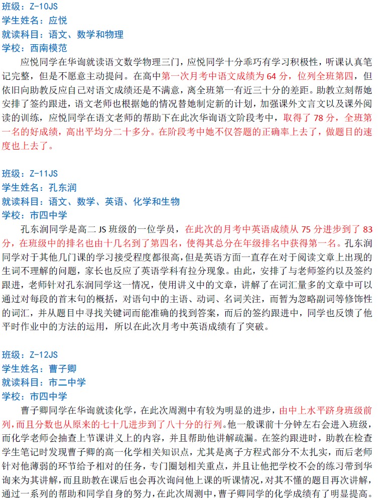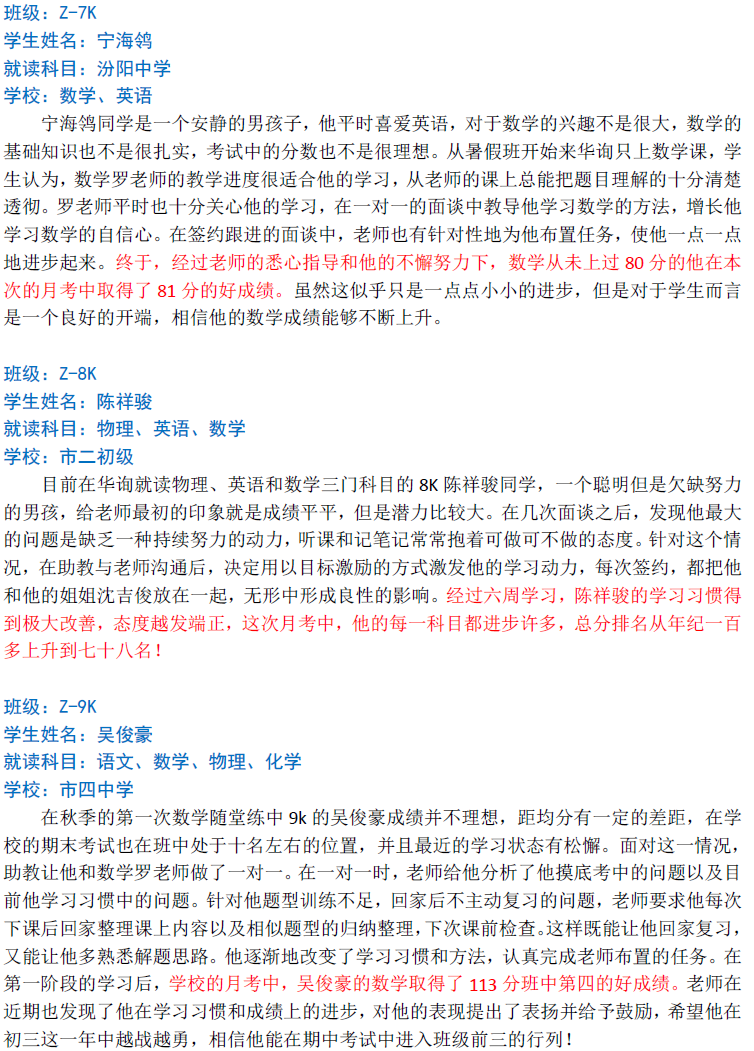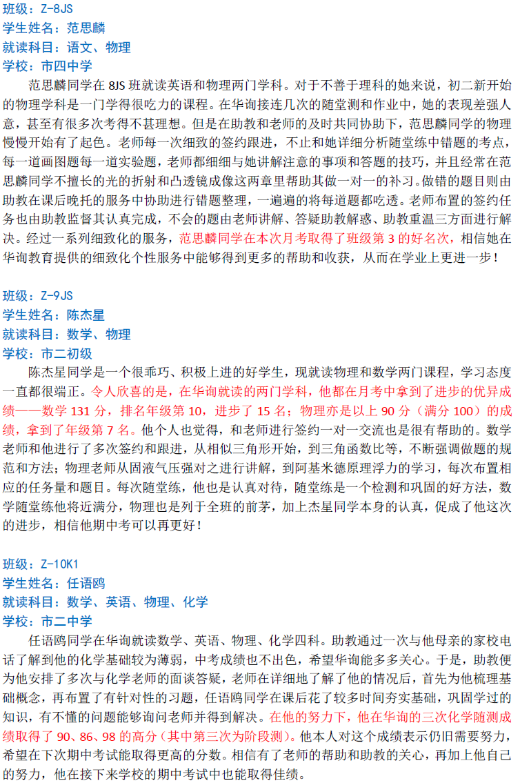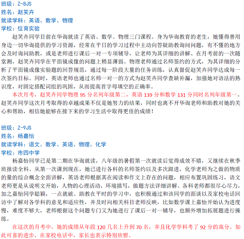華詢教育階段成績展--第一次月考(中科篇)