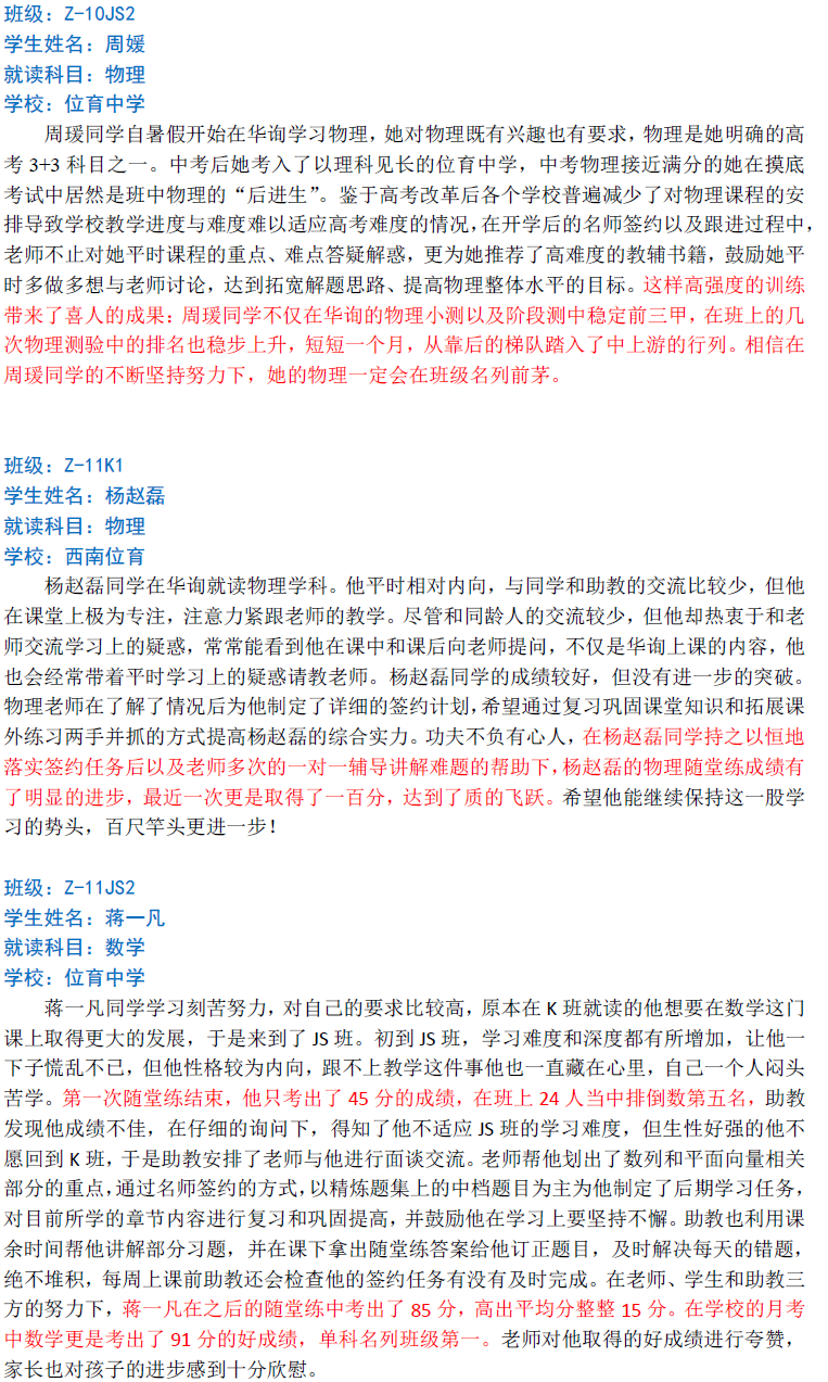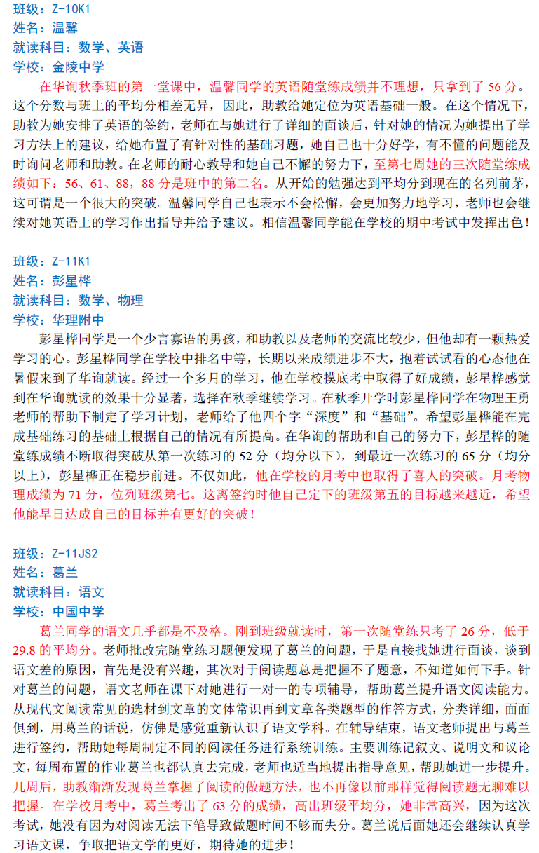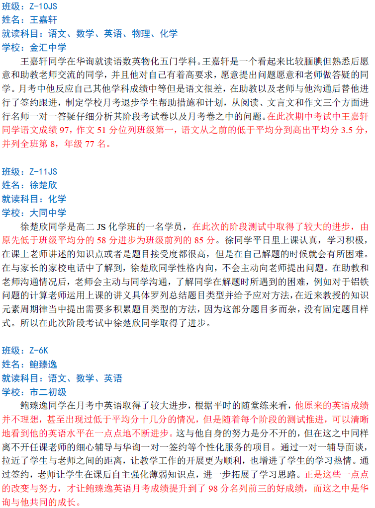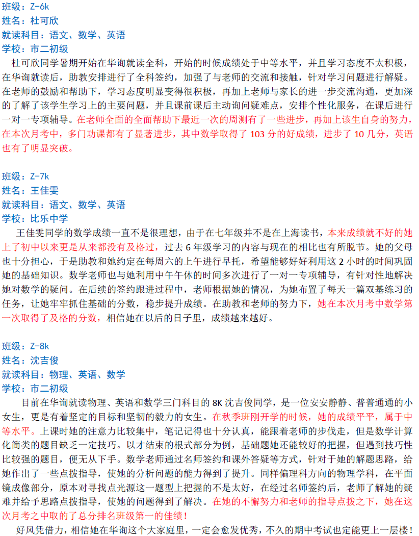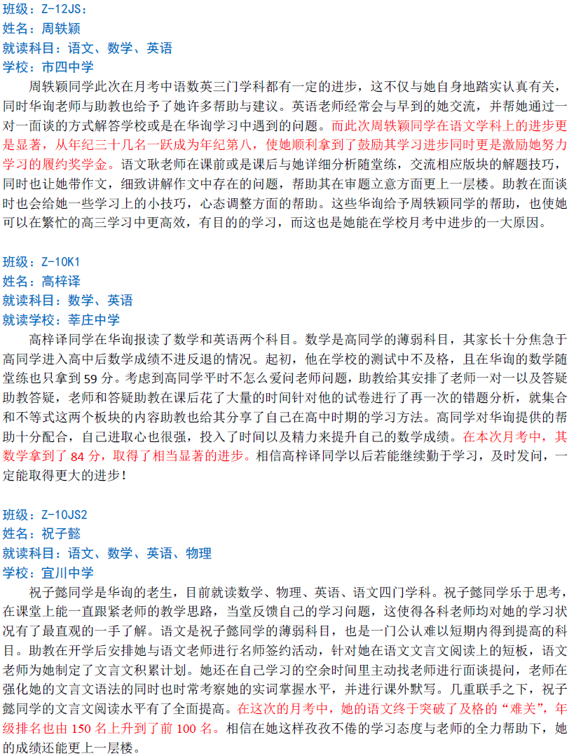 華詢教育階段成績展--第一次月考(中科篇)