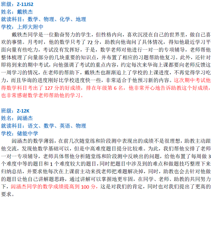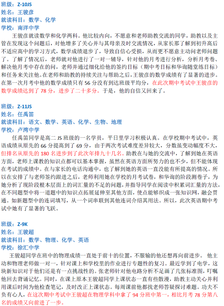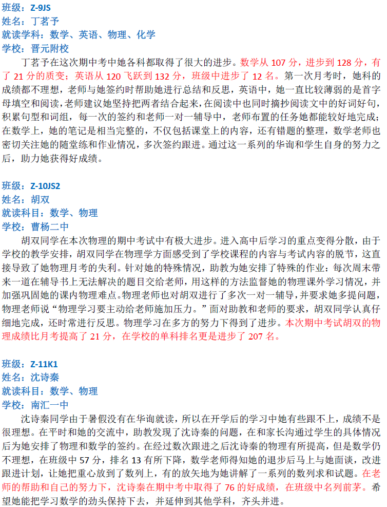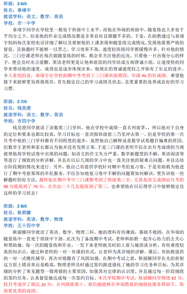 華詢教育階段成績展--階段測+期中(中科篇)