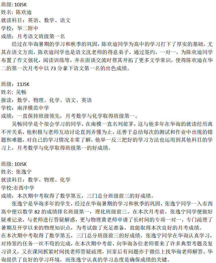 華詢教育階段成績展--月考+階段測+期中(寶鼎篇)